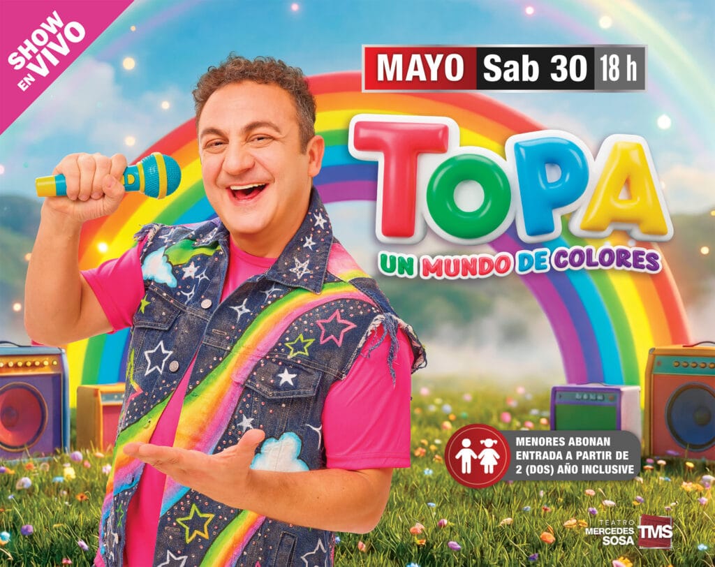 El show está inspirado en el álbum “Un Mundo de Colores”, que reúne canciones pensadas para jugar, imaginar y disfrutar en familia. Durante la función, el público podrá escuchar y cantar algunos de los temas más queridos del repertorio de Topa, en un recorrido musical que combina clásicos infantiles con nuevas canciones.